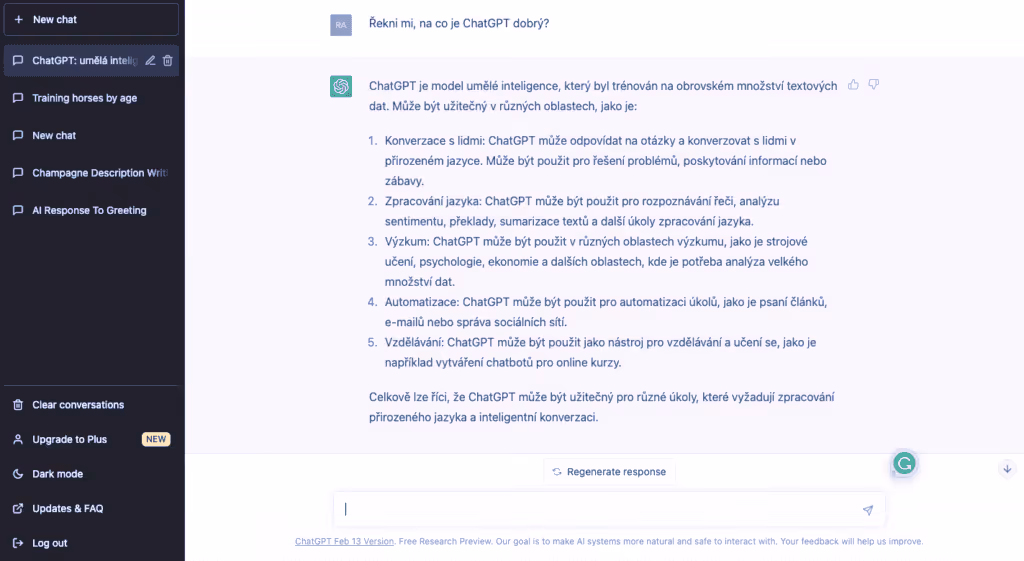 Tenhle populární nástroj asi už všichni známe, ale je třeba ho zmínit, a to na prvním místě. ChatGPT je AI chatbot, který se na vaši výzvu zapojí do dialogu a popovídá si s vámi klidně i o nesmrtelnosti brouka. Dokáže vám odpovědět na všechny možné otázky, které mu položíte a na váš příkaz za vás může například psát texty ve všech možných okruzích a tématech. A funguje skvěle i v češtině, což je velké plus!