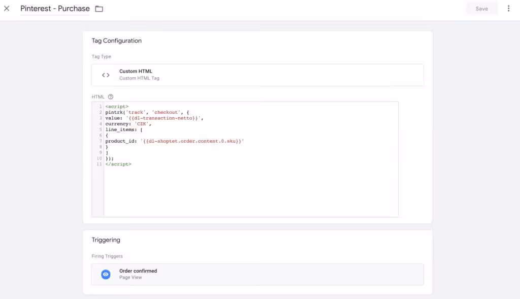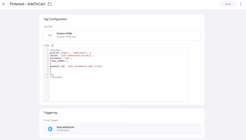 👉🏻 Jednotlivé kódy si přidejte do Tagů v Google Tag Manageru.