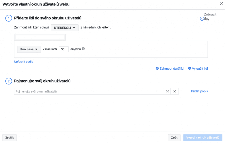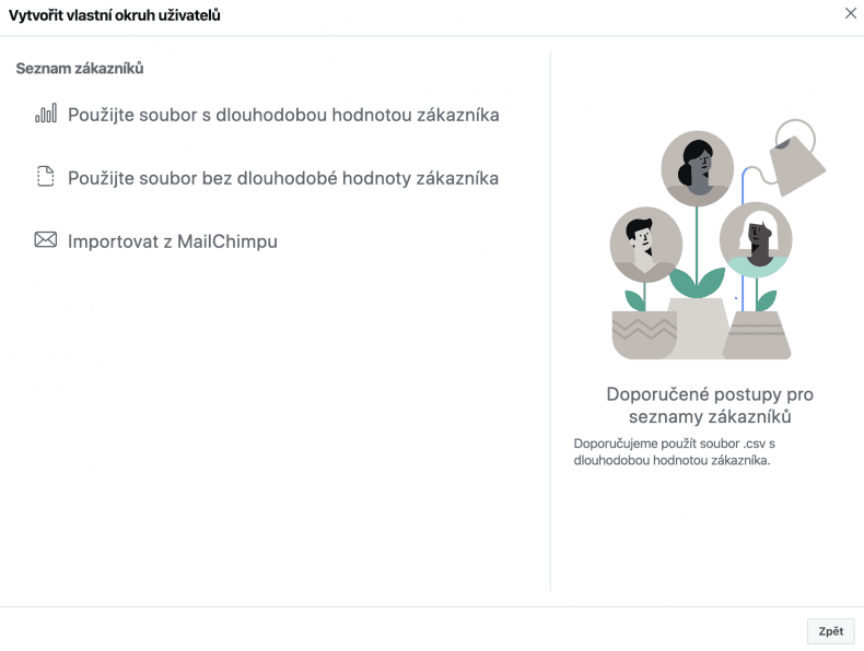 Abyste mohli zacílit reklamu na uživatele, kteří vás již znají, potřebujete vytvořit vlastní okruh uživatelů.