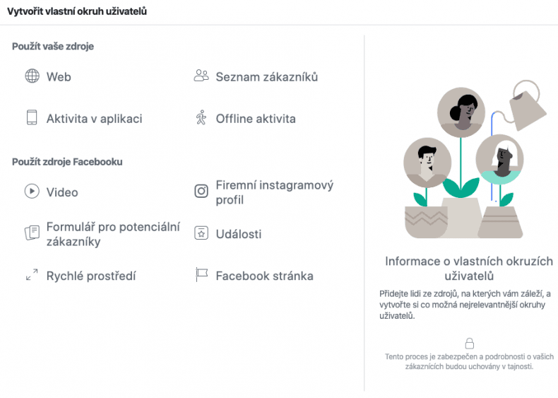 Facebook vám umožní vytvořit si okruhy uživatelů prakticky ze všech lidí, kteří s vaší firmou přišli do styku jak na platformách Facebook nebo Instagram, tak na vašem webu (pokud máte na webu implementovaný měřící kód Facebook Pixel).