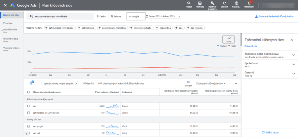Pro analýzu klíčových slov můžete využít nástroje Collabim, Marketing Miner nebo Semor. Tyto nástroje vám poskytnou informace o objemu vyhledávání, konkurenci, souvisejících klíčových slovech a další užitečné statistiky.