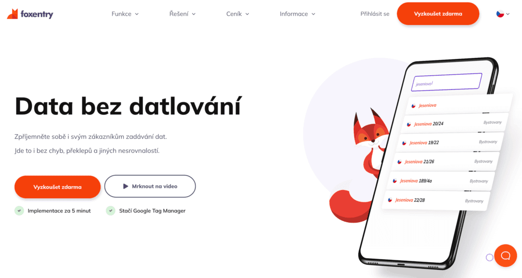 🛠 Tip: Minimalizujte počet kroků v nákupním procesu a nabídněte možnost rychlého nákupu bez nutnosti registrace. Pomoci vám s tím může nástroj na automatické doplnění dodacích a fakturačních údajů FoxEntry. Eliminujete tak zbytečné chyby při vyplňování údajů a zákazníkům usnadníte práci s vyplňováním formuláře.