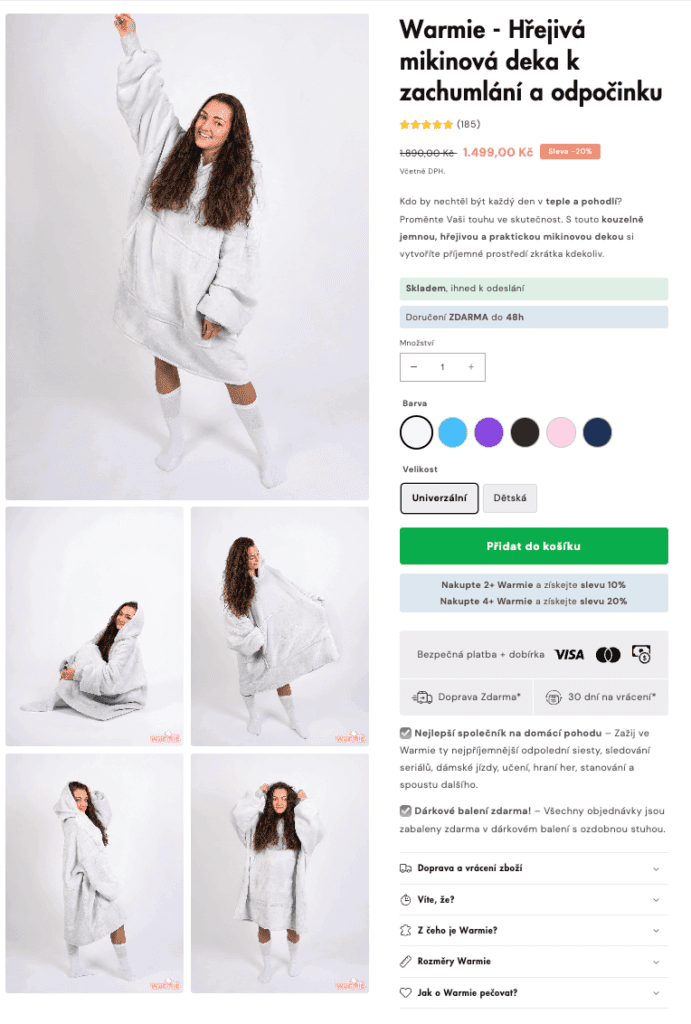 Příklad produktové stránky s vysokým konverzním poměrem našeho klienta warmie.cz