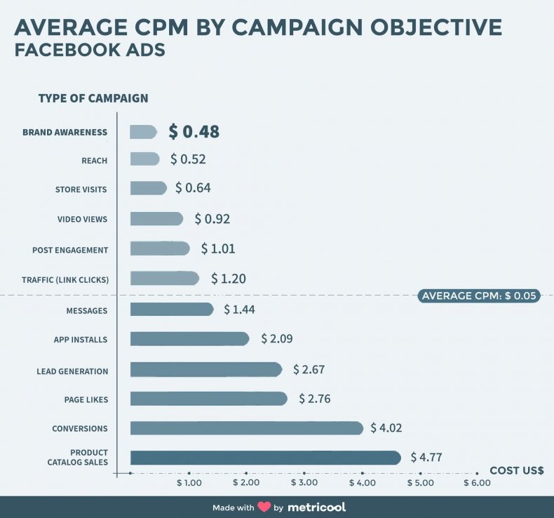 Pro představu se můžete podívat na studii od Metricool. Zjistíte, že nejlevnějším je účel zvýšení povědomí o značce, nejdražší pak prodeje z katalogu.
