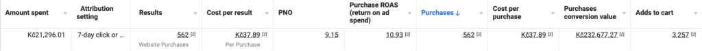 Tyto výsledky jsou tak čistě z akviziční kampaně – open targeting, vyloučený engagement Facebook a Instagram a všichni, kteří nakoupili za posledních 30 dnů: