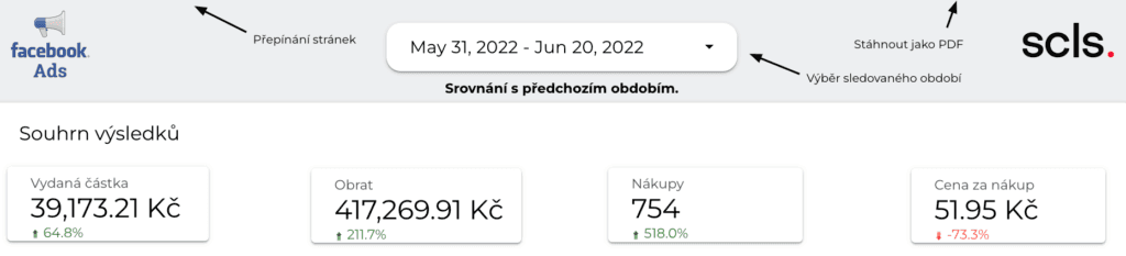 Zde ještě přikládáme výsledky všech Facebook kampaní za sledované období z reportu Google Data Studio: