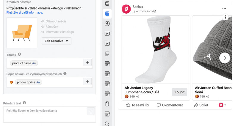 Dynamický remarketing vychází z dynamických reklam (DPA), které vypadají podobně jako ostatní reklamy na zmíněných sociálních sítích. Ale místo toho, abyste museli vytvořit samostatnou reklamu pro každý produkt, generují se reklamy automaticky z vašeho katalogu produktů, který máte nahraný v administraci Facebooku.