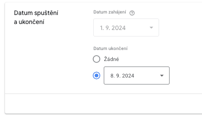 Automatizované spuštění a pozastavení: Doporučujeme nastavit datum spuštění a pozastavení kampaní. Zajistíme si tak spuštění a pozastavení kampaní v době trvání výprodeje.