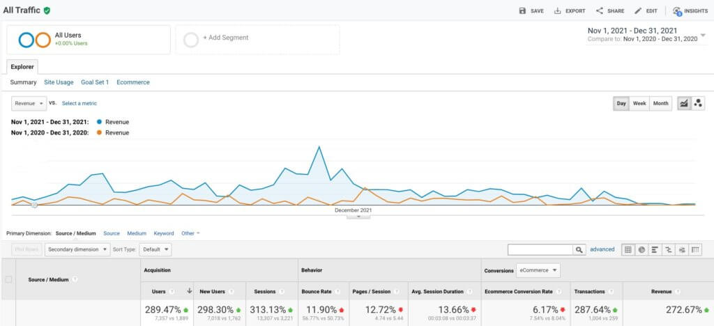Kristýna v minulosti vyzkoušela Facebook Ads jen skromně na podporu příspěvků a toto byla její vůbec první větší zkušenost s Facebook reklamou. A byla mile překvapená. Celkové tržby v listopadu a prosinci 2021 se oproti roku 2020 zvýšily o celých 273 %!