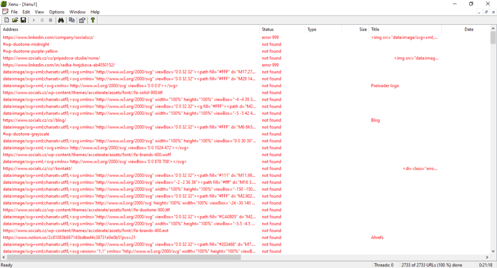 Pro rychlé a operativní vyhledání odkazů na neexistující stránky můžete použít také crawlovací nástroje oblíbené u SEO specialistů jako je Screaming Frog, SEO Power Suite nebo třeba Xenu.