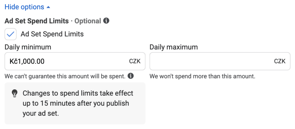Alternativou je vytvořit druhou sestavu v dlouhodobé kampani a nastavit jí minimální denní rozpočet, abyste měli jistotu, že se BF reklama bude zobrazovat.