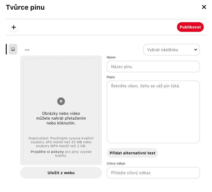 V této části si vyberete piny, které máte v plánu propagovat. Buď si vytvoříte zcela nový pin nebo využijete stávající nástěnku.