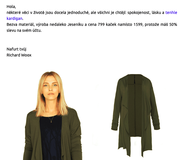 Máte zákazníkovi co říct o správném používání nebo udržování produktu? Nebo jaké komponenty nebo doplňky k němu může zakoupit? V tom případě je ideální mu o tom dát vědět a poslat mu o tom mail.