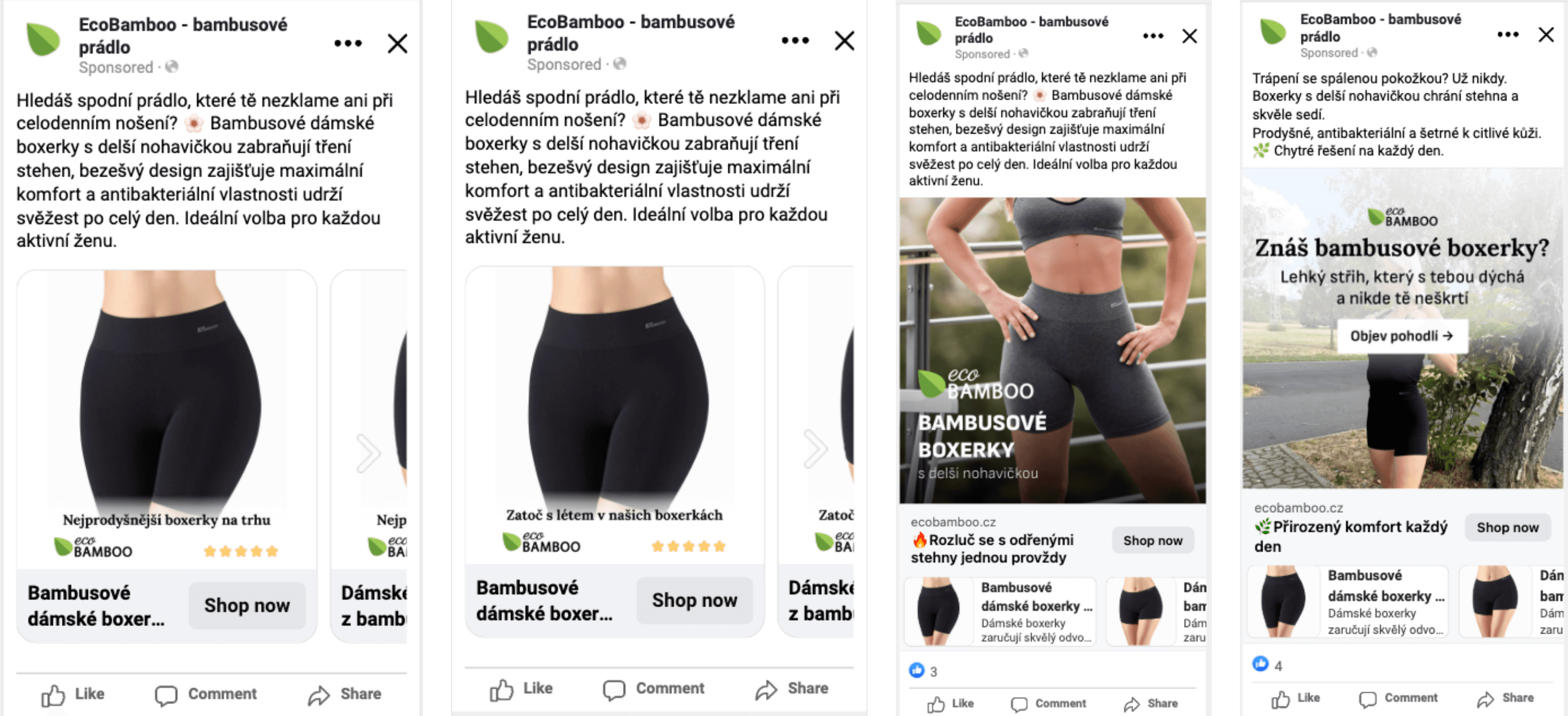 Vítězný banner testujeme systematicky pro další produkty a v dalších formátech (carousel, prodejní či UGC video, atp.) jako jsme si ukázali u případu boxerek.