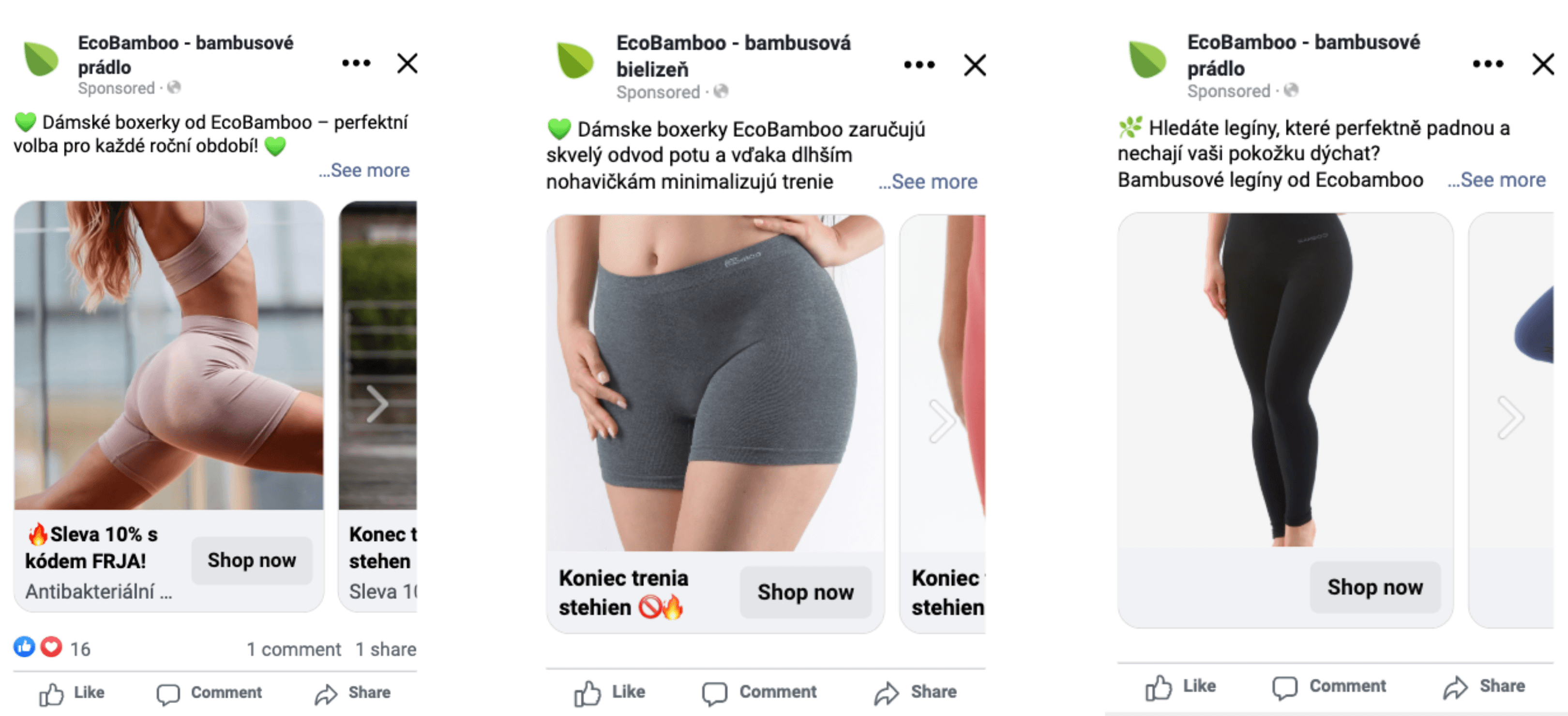 3. Kreativy a formáty, které neprodávaly: Katalogové reklamy modelek v legínách s nulovou relevancí pro cílovou skupinu.