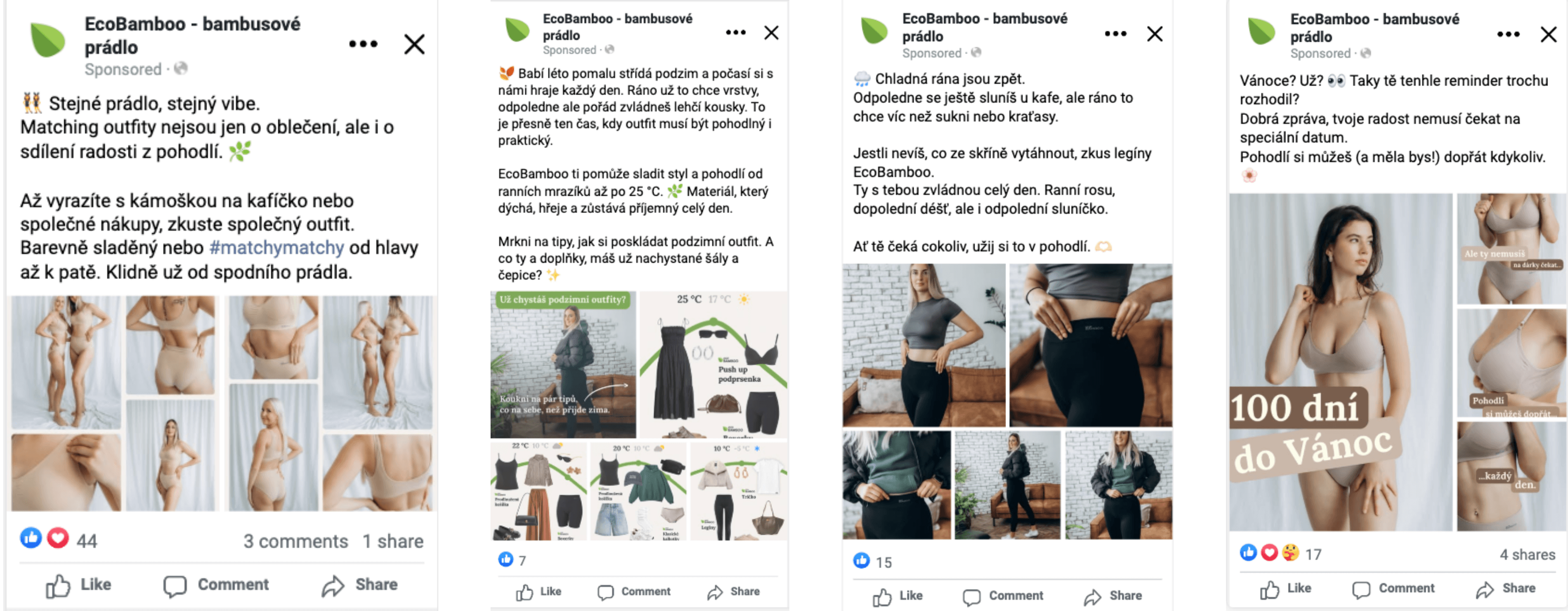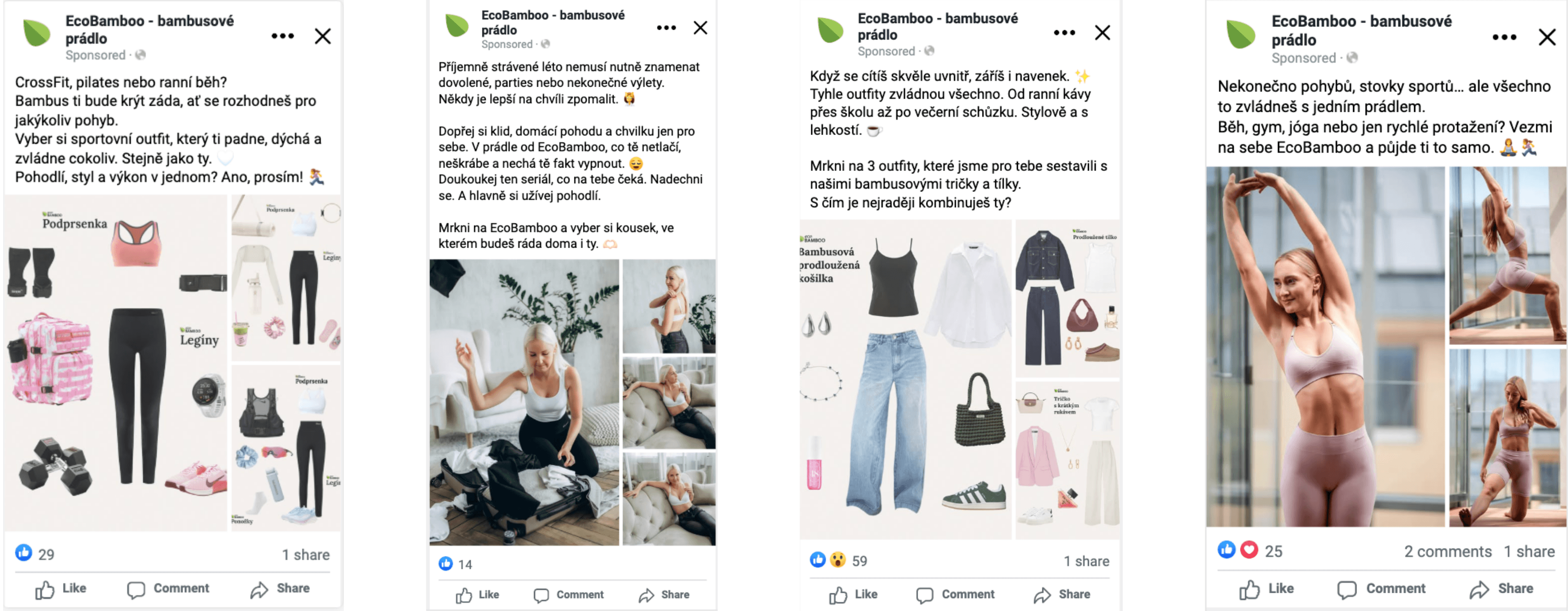 Zatímco Ema cílila na hlavní buyer personu, se Zuzkou a Luckou jsme testovali jinou strategii: místo hledání nových cílových skupin jsme chtěli otevřít představivost stávajících zákaznic o tom, kde všude a kdy by se jim bambusové oblečení mohlo hodit: