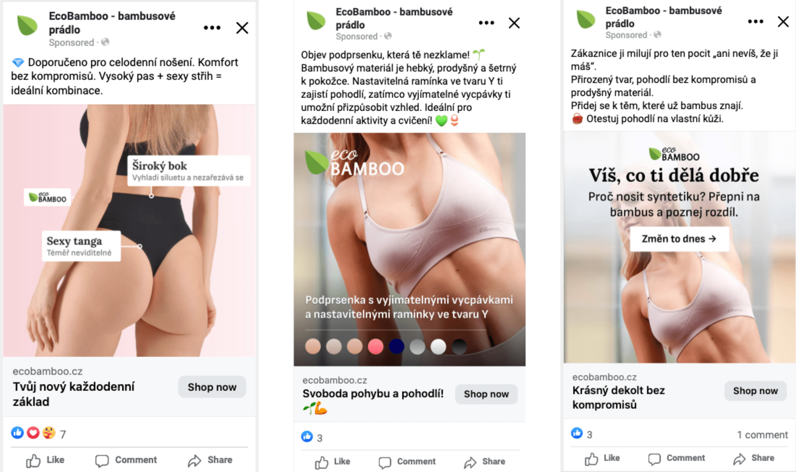Od ,,udržitelného bambusového oblečení pro moderní a svůdnou ženu" a neosobních reklam, které vypadaly třeba takto ⤵️